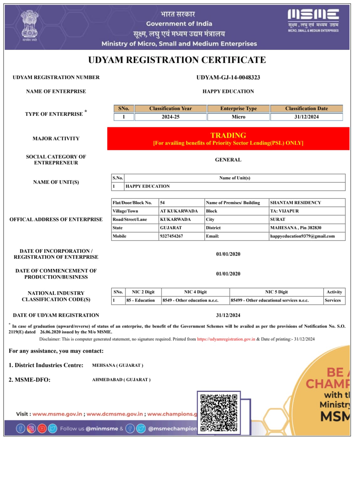 Udyam Certificate